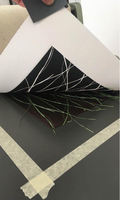 In Kollaboration mit Atelier Mirla aus Basel entstand dieses Teppich-Design. Die Grundlage für den Teppich ist mit Hilfe von wilden Gräsern, Ölfarbe und den Werkzeugen des Tiefdruckes entstanden.
